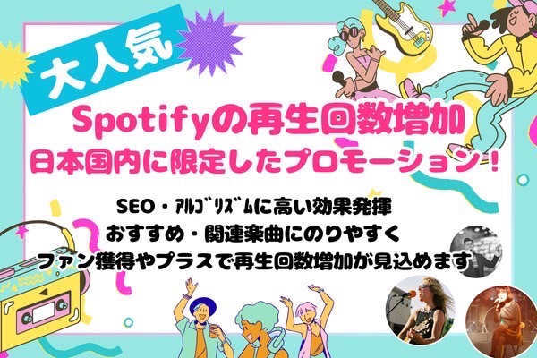 特にあなたが日本人アーティストでしたら尚更、日本国内で再生されるこのプランを強くおすすめします。Spotifyの日本人再生回数を増やして人気アーティストの仲間入りをしてください!